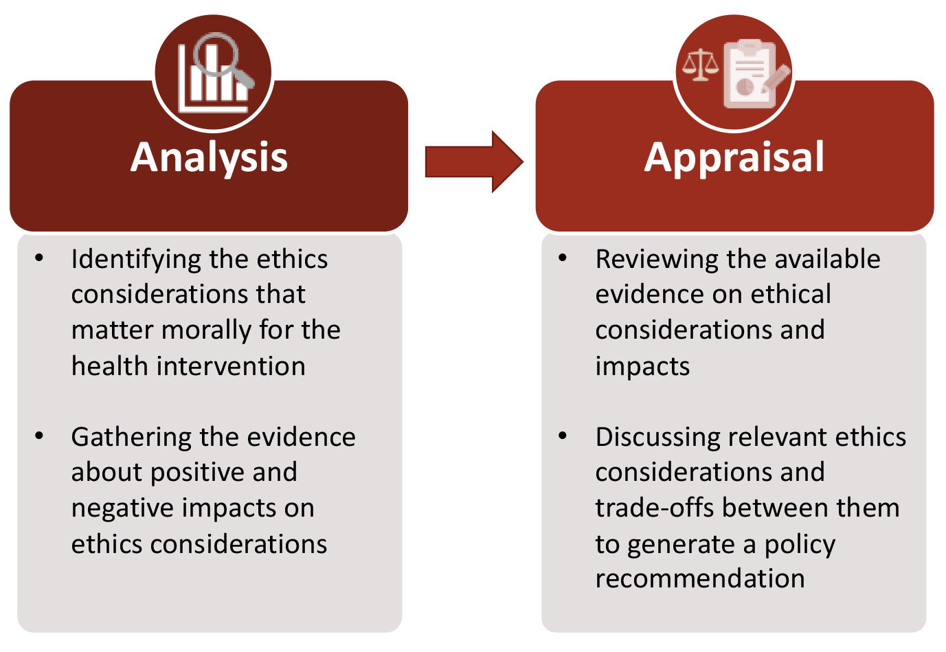 The SAVE-UHC Ethics Framework was designed to inform the types of evidence that are gathered in the “analysis” stage, as well as guide deliberations during “appraisals.”